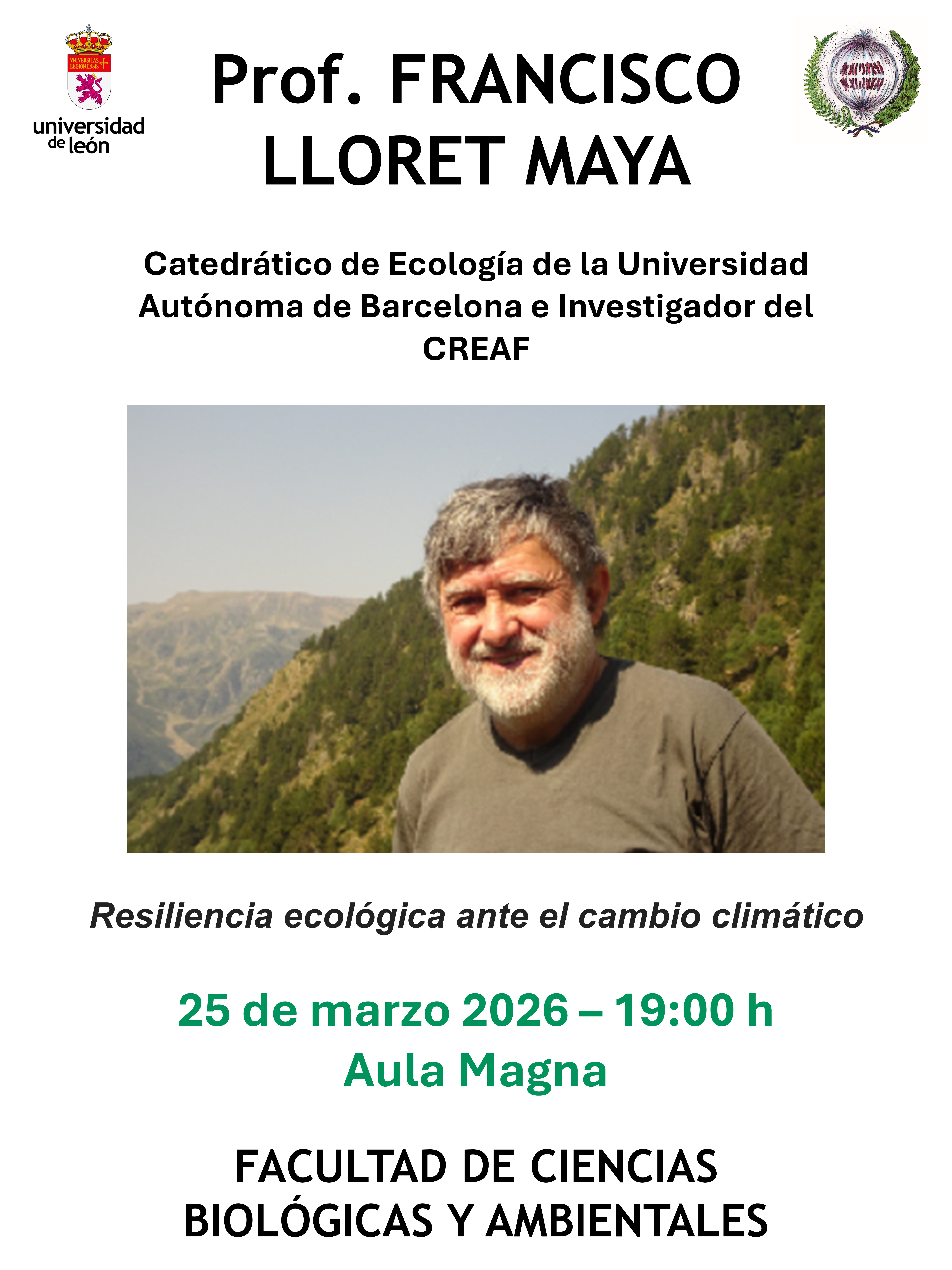 Noticias y Eventos II Congreso de Jóvenes Investigadores: Programa III Ciclo de Conferencias de Investigación y Divulgación Científica: Septiembre, Octubre, Noviembre de 2025; Febrero-Mayo 2026 Becas, Ayudas y Premios de la Fundación BBVA Publicamos todas las ofertas de trabajo, cursos y becas que recibimos en LinkedIn. ¡Crea tu perfil y síguenos para estar al tanto de todas las novedades! Noticias y eventos pasados: Link Destacados Calendarios: Curso 2025-2026 Agendas: Grado de Biología: 1er Semestre y 2º Semestre Grado de Biotecnología: 1er Semestre y 2º Semestre Grado de Ciencias Ambientales: 1er Semestre y 2º Semestre Reserva de Aulas: Curso 2025-2026 Severo Ochoa Formulario de Reserva Representantes de estudiantes: Delegados y Asociaciones estudiantiles Portal científico de la Universidad de León: Grupos de Investigación Participa en las redes sociales de la FCCBA! Envíanos a fccbaconnect@unileon.es este formulario YOUTUBE FCCBA fccbaconnect 🧬⚖️ ¿Más beneficio que riesgo? El 11 de 🌲🔥 ¿Pueden los bosques sobrevivir al cambio III Ciclo de Conferencias de Investigación y Divu 🧬 Microcredencial ULE · Biología 🔔 Último 🌱🔬 Nueva microcredencial ULE para profes de ✨ II Congreso de Jóvenes Investigadores ✨ Bio 🌱 LEÓN BUSINESS TALENT 2025 – Bio & Social E 🌍 Charla imperdible este lunes 📅 1 de diciem 📅 26 de noviembre — 13:05h 📍 Aula Magna, F 📣 Este domingo — 24 de noviembre, 19:30h 📍 🔥🌿 III Ciclo de Conferencias – Biodiversid 📢 III Ciclo de Conferencias – ULE 🗣 Tania CORRECCIÓN: 📢 Próxima conferencia en la FCCBA 📢 Próxima conferencia en la FCCBA (ULE) 🗣 📢 Charla especial en la FCCBA (ULE) En memoria 🐻🌱 CHARLA El jardinero fiel Miércoles 12 no 🔬✨ SAN ALBERTO MAGNO 2025 ✨🔬 Llega uno d Próximo miércoles en la ULE 👇 “Producción 📢 III Ciclo de Conferencias de Investigación y Cargar más Seguir en Instagram